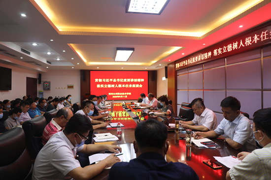 9月11日下午,校党委书记周保平主持召开“贯彻习近平总书记重要讲话精神 落实立德树人根本任务”座谈会,学习习近平总书记署名文章《思政课是落实立德树人根本任务的关键课程》、习近平总书记在全国抗击新冠肺炎疫情表彰大会上的讲话精神及习近平总书记向全国广大教师和教育工作者慰问的讲话精神。校党委委员,全体中层正职,思想政治理论课教师参加了座谈会。