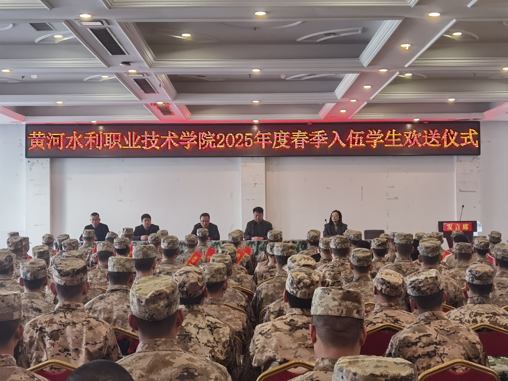 3月14日上午,黄河水利职业技术学院在开封市民兵训练基地举行2025年春季大学生入伍欢送会。校武装部部长柴杉、副部长宋杰、张帆,各二级学院领导及辅导员代表参加欢送会。会议由武装部副部长宋杰主持。