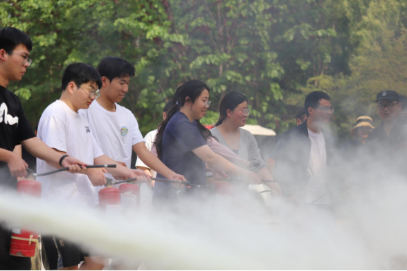 讲解过后,灭火演练正式开始,大家按照讲解要领,有秩序地分批拿起灭火器冲向火场,迅速将大火扑灭。此次演练将消防宣传和实战灭火相结合,通过让师生员工亲身使用灭火器,进一步提高了师生员工的消防安全自救意识和灭火实战能力,切实将“全民消防、生命至上——人人都是消防安全参与者”理念转化为守护师生安全的坚实屏障,为构建平安校园创造了良好的消防安全环境。