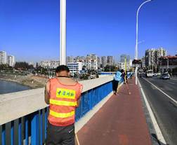 图为测量员在测量襄阳长虹大桥