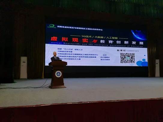 赵章红教授报告的题目是《虚拟现实与教育创新发展》。报告会上,赵主任从虚拟现实的概念,虚拟现实的特征,虚拟现实与3D的区别,虚拟现实关键技术,人工智能、大数据、5G等新一代信息技术与虚拟现实融合发展以及虚拟现实赋能教学实践创新等方面,深入浅出地介绍了虚拟现实技术。