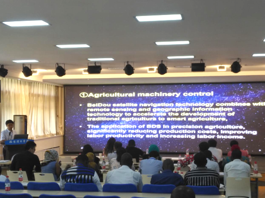 2019年6月4日,测绘工程学院选派何宽副院长、郭玉珍、陈慧三位教师赴洛阳理工学院,为“一带一路”国家职业技能培训班(建筑类)开展了以《北斗卫星导航系统在“一带一路”基础设施中的应用》为主题的全英文授课,主要介绍了我国北斗系统基本情况和优势,并结合丰富的实例讲解了基于北斗的定位、导航和授时三大领域在一带一路基础设施建设方面的应用,三位老师在理论授课中还穿插进行了相关技术的示范操作。学员们对该授课内容非常感兴趣,在讲授时间结束后又提出了很多问题,三位教师一一给予解答,得到了学员们的一致认同。此次授课活动,主讲教师与学员们彼此分享新概念、新技术、新观点,增进发展中国家间的相互了解。同时也增强了我院教师的专业双语教学能力和对外交流的能力。