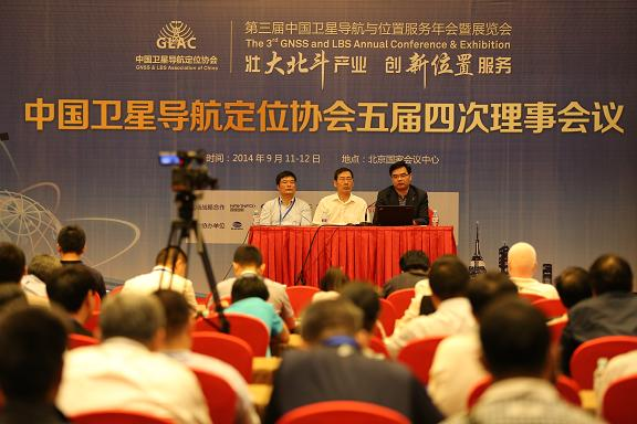 2014年9月10日~12日,中国卫星导航定位协会第五届理事会第四次会议在北京国家会议中心隆重举行,第五届理事会第四次会议议程是:1.听取工作汇报;2.审议协会组织建设事宜;3.征求协会发展的意见和建议。同时第三届中国卫星导航与位置服务展览会也在北京国家会议中心隆重开幕。科技界院士、专家和全国相关组织机构及企事业单位代表围绕“壮大北斗产业,创新位置服务”的主题,共襄产业发展大计。国家测绘地理信息局局长库热西出席开幕式并讲话。“中国卫星之父”孙家栋、徐冠华、宁津生院士偕同业界10多名院士,以及著名专家、企业家与参会代表面对面交流,共商产业发展大计。国家局副局长闵宜仁出席会议。中国卫星导航定位协会会长张荣久、中国卫星导航系统管理办公室主任冉承其、总参测绘导航局副局长杨宝峰在开幕式上致辞。