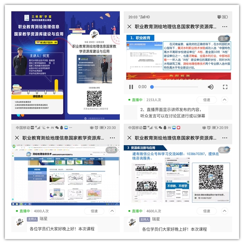 3月27日我院何宽副院长在河南省测绘学会主办的三维圈学堂主讲了《职业教育测绘地理信息国家教学资源库建设与应用》专题网络直播公开课,课程主要介绍了职业教育的发展现状,测绘地理信息国家教学资源库建设情况以及如何使用测绘地理信息国家教学资源库,5000余人在线收看了课程直播。