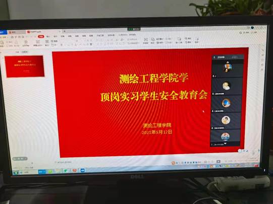为增强外出顶岗实习学生的安全防范意识,提高同学们的安全防范能力,5月12日晚上,顶岗实习指导老师彭战松通过线上的形式给工程测量1805-1806的学生召开以“顶岗实习安全教育”为主题的班会。