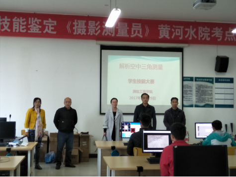 2017年10月29日测绘工程学院摄影测量与遥感教研室举办“解析空中三角测量”技能大赛。测绘工程学院陈琳院长、纪勇书记、刘广社副书记来到技能大赛现场,给参加技能大赛的同学加油鼓劲,希望以技能大赛为契机,充分发挥职业技能竞赛在高技能人才培养、选拔和激励等方面的积极作用,为测绘技能人才提供了一个展示专业技术水平和操作能力的竞技舞台。通过参加竞赛,选手们相互学习、切磋技艺、取长补短、以赛促学,赛出风格、赛出水平,促进所有同学职业技能水平加快提升。