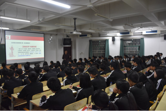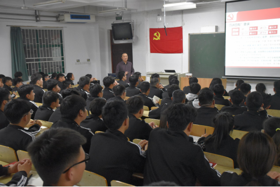 2019年4月28日晚,测绘工程学院党总支书记纪勇在JX2202为第45期党校学员们上了第一次党课。第45期全体入党积极分子和发展对象参并认真听讲。