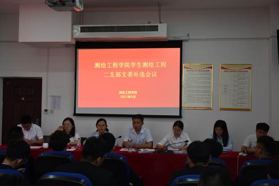 测绘工程学院党总支学生测绘工程二支部为不断加强基层党组织建设,充分发挥好党支部战斗堡垒作用和党员先锋模范作用,按照《中国共产党党章》等有关规定,并征求党员意见并报上级党组织同意,于5月31日在学院会议室SY5434召开支部大会开展了支委补选工作。