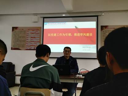 讲座中,党总支副书记彭战松讲话,他指出,以党建工作为引领,推进学风建设,与参会成员结合自己个人的成长经历和扶贫经历,紧密联系思想实际和工作实际,谈认知、谈思想。大家深切感受到,坚持党的领导,是加强党建工作,推进学风建设,改善学校学风的根本保证。为学生谋福利、为老师担忧愁,是班级干部的初心和使命。