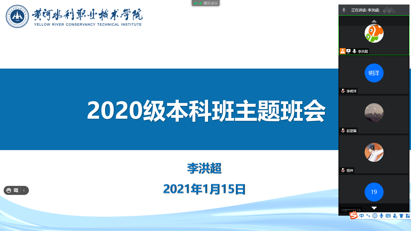 1月15日下午,测绘工程2001本科班召开首场寒假线上主题班会,班会由班主任李洪超主持,全班30名同学参加了线上会议。