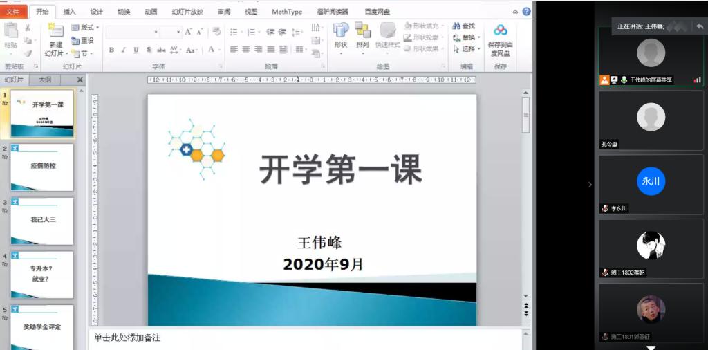 9月1日下午,我院全体辅导员通过线上线下多种形式为同学们召开“开学第一课”主题班会,欢迎同学们顺利返校。