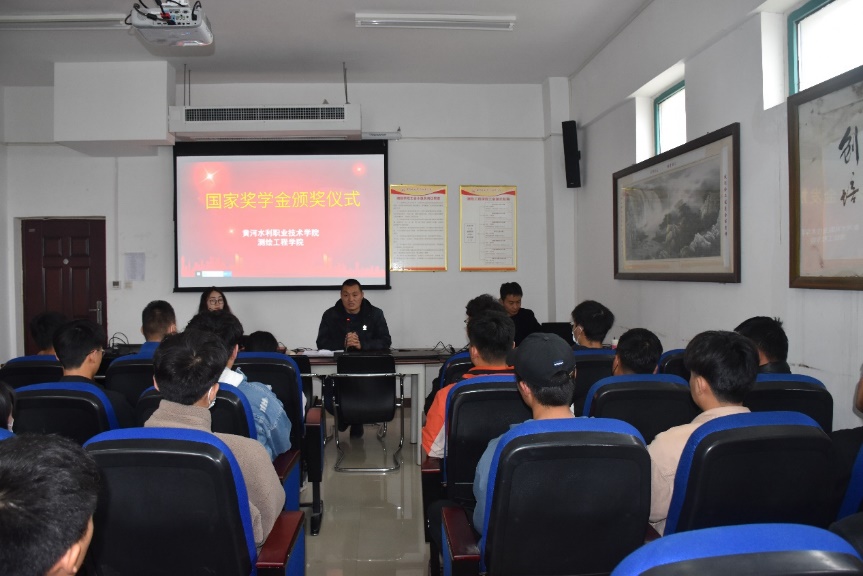 4月2日上午,测绘工程学院在院会议室举行国家奖学金颁奖仪式。党总支副书记彭战松、分团委书记陈普智、2020级辅导员韩清清、国家奖学金获得者以及学生代表出席了本次颁奖仪式。
