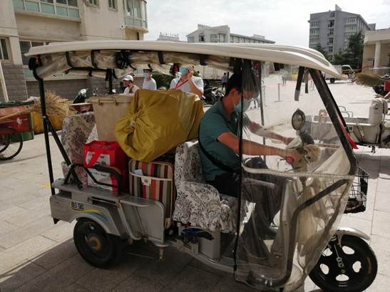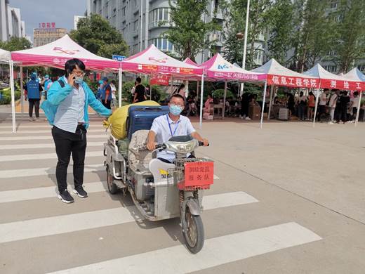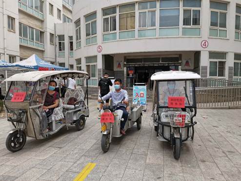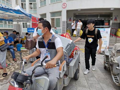 学生生活区汽车无法通行,教工党员利用家中自用三轮车为毕业生托运行李,志愿服务队中的三轮车穿梭在校园路面上,成为一道亮丽的风景线。在同志们的共同努力下,28日当天顺利完成了87%的毕业生返校及离校手续办理工作,也使广大毕业生深切感受到了学院的关怀与温暖。