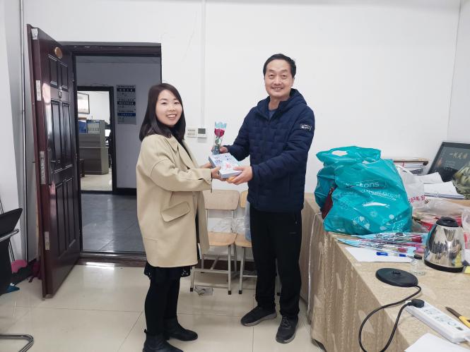 为了表示我院女职工在过去的“双高校”建设和“十四五”规划作出的重要贡献,测绘工程学院工会主席纪勇亲自为女职工代表们发放礼品并合影留念。