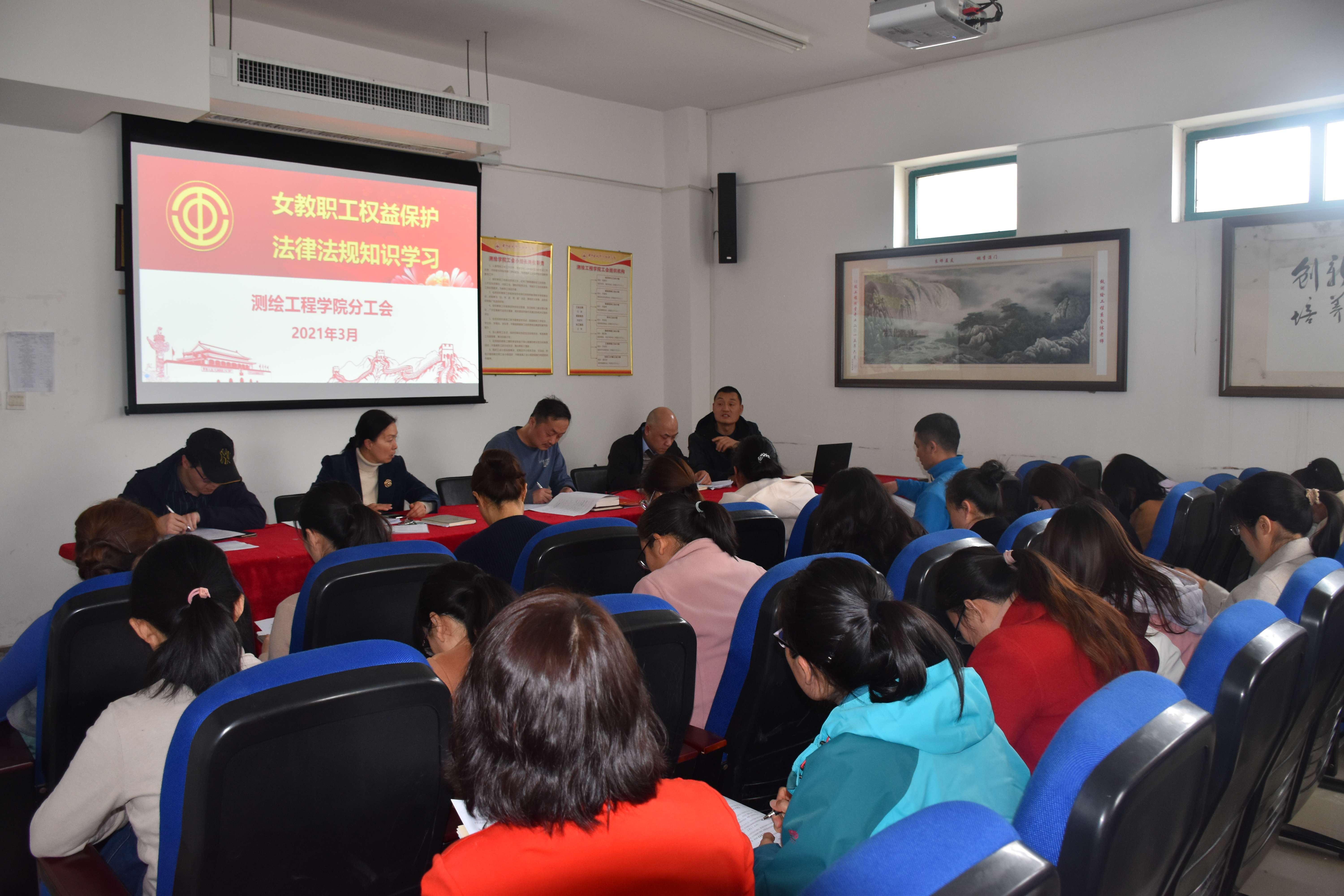 3月30日下午,测绘工程学院工会组织女教职工参加进行权益保护法律法规知识学习并答题。权益保护法律法规知识包括《习近平在联合国大会纪念北京世界妇女大会25周年高级别会议上的讲话》《河南省女职工劳动保护特别规定》《中华人民共和国反家庭暴力法》三个文件。