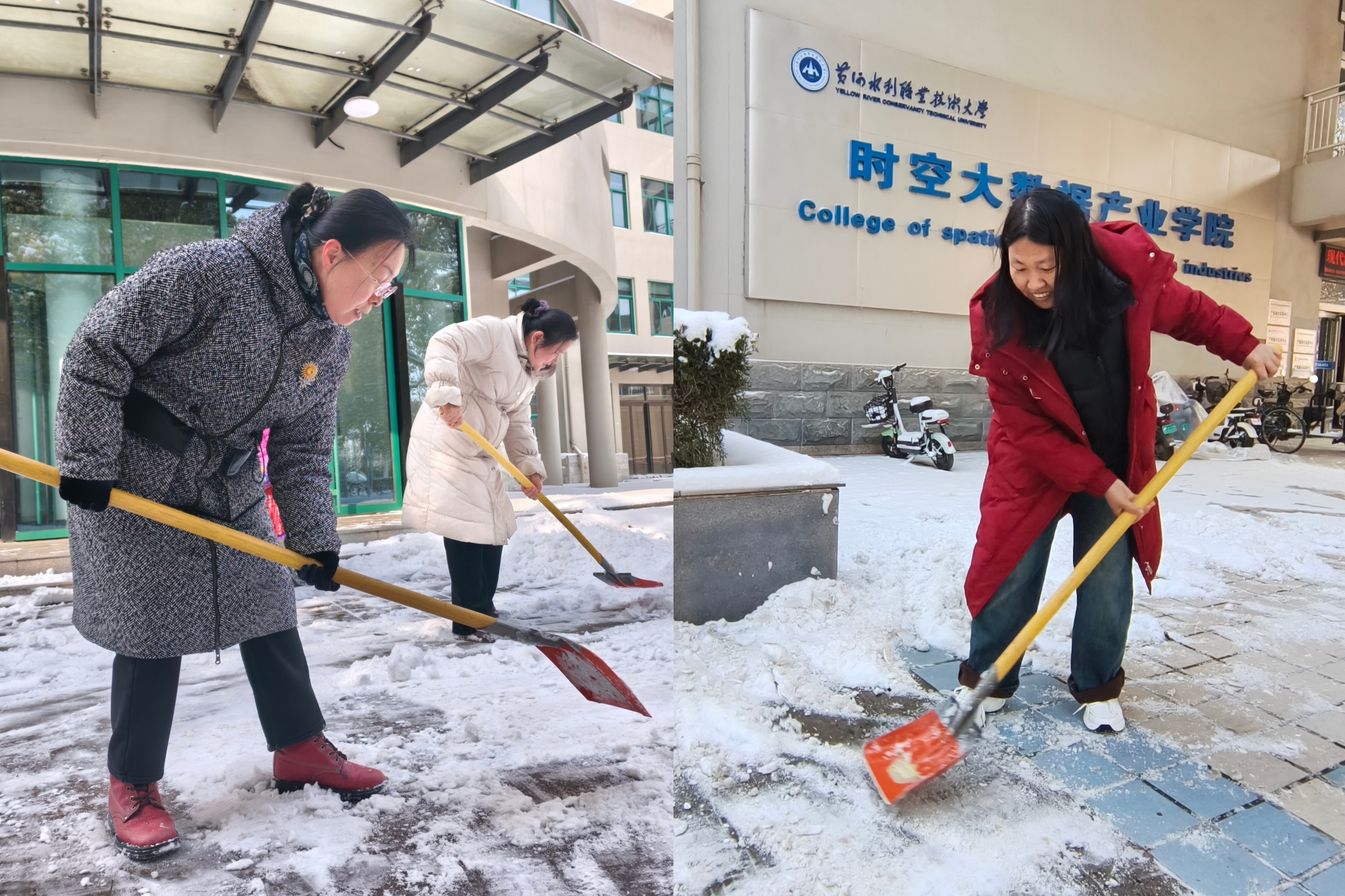 2026年1月20日,开封遭遇强降雪天气,校园道路积雪厚重、结冰难行。测绘工程学院党总支第一时间响应,组织党员教师成立“冰雪突击队”,在党总支书记高琼和院长何宽的带领下,全力开展扫雪除冰志愿服务。