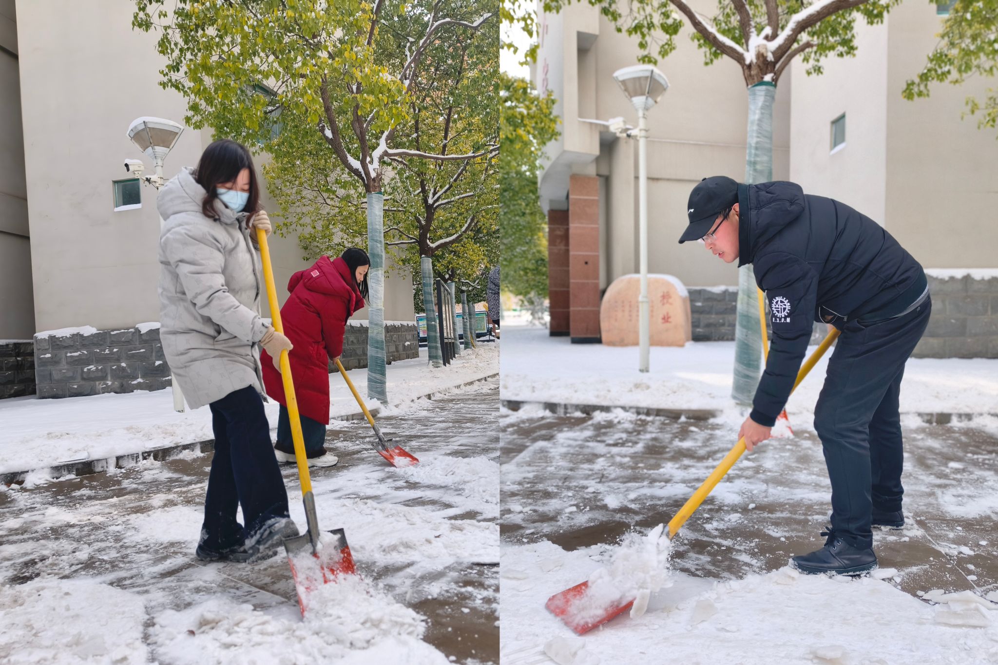 党总支书记高琼和院长何宽带领教师党员清理校园积雪