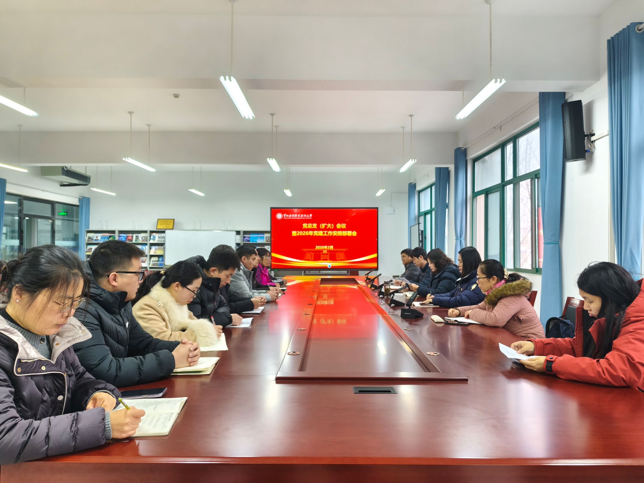 最后,高琼对学院2026年党建工作进行了安排部署。她强调,各党支部要始终把政治建设摆在首位,坚持用习近平新时代中国特色社会主义思想凝心铸魂。要着力推动党建与业务双融双促,持续培育和打造党建品牌,推动党建工作深度融入教学改革、科学研究、社会服务与人才培养全过程,切实以党建引领高质量发展、以高质量发展检验党建成效。要纵深推进全面从严治党,大力弘扬清正廉洁、担当实干的优良作风,持续巩固风清气正的政治生态,为学院事业健康发展提供坚强保证。