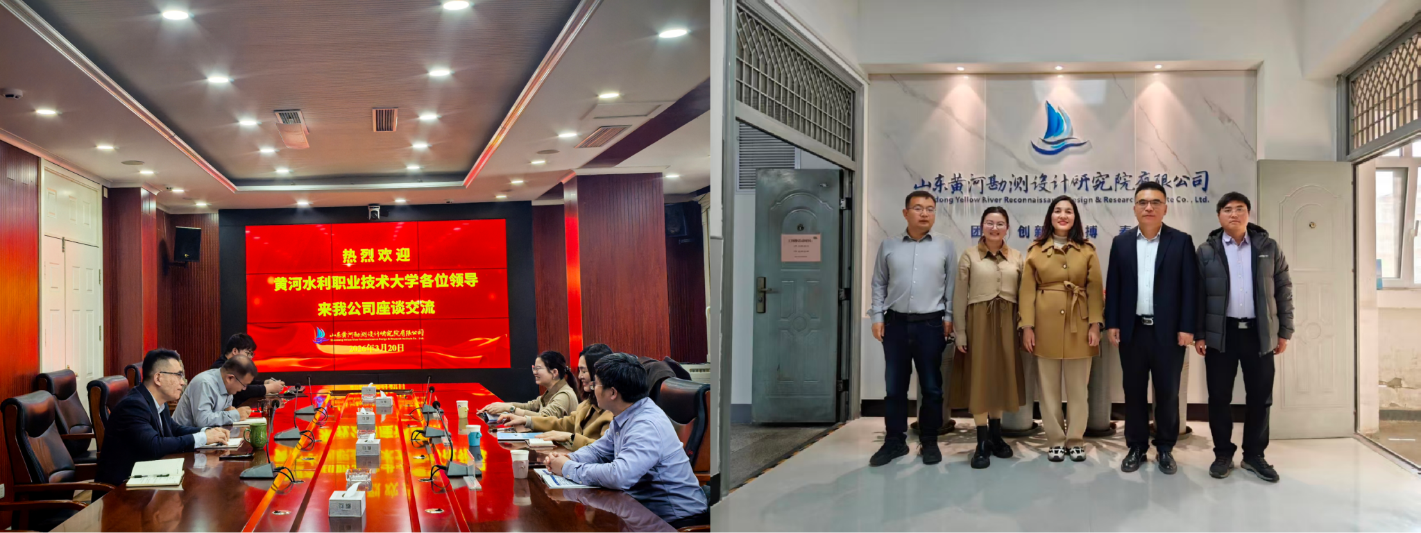 调研期间,团队一行深入企业生产一线,详细了解两家企业在测绘服务、智慧水利建设、风电巡检、水下测量等领域的业务布局、技术需求及人才缺口,重点围绕行业数智转型背景下的技术攻关、校企合作模式创新、实践教学资源共建等核心议题,与企业负责人、技术骨干展开深入座谈,精准捕捉行业发展趋势和岗位需求导向,为推进产教融合、校企协同育人落地见效奠定坚实基础。其中,牧马人(山东)勘察设计集团主营测绘服务、风电巡检等业务;山东黄河勘测设计研究院有限公司作为黄河治理与保护的核心技术支撑单位,正加速推进数字化转型,积极布局实景三维模型、低空经济、数字孪生水利等新技术应用,两家企业的发展需求为永利官网专业改革提供了重要参考。