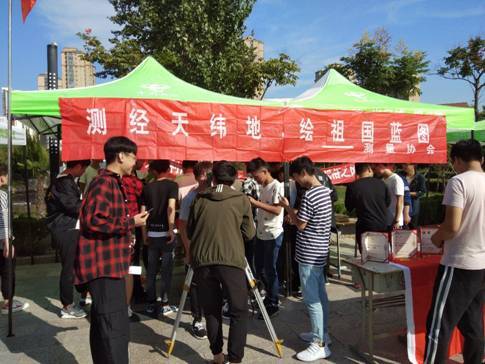 招新现场热闹非凡,几十个学生社团纷纷亮相,形式多样的展示,尽显青春激情,吸引感染着前来咨询的每一位学生。作为省级优秀学生协会的测量协会更是高度重视这次活动,不仅制作了活动展板,还从仪器室里面借来了先进的三维激光测量仪器演示,开阔了同学们的视野,丰富了招新活动的内容,现场有近两百名学生报名参加了测量社团。