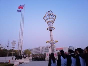 随着鲜艳的五星红旗在雄壮的国歌声中冉冉升起,同学们面对国旗昂首挺胸、庄严肃立、行注目礼。