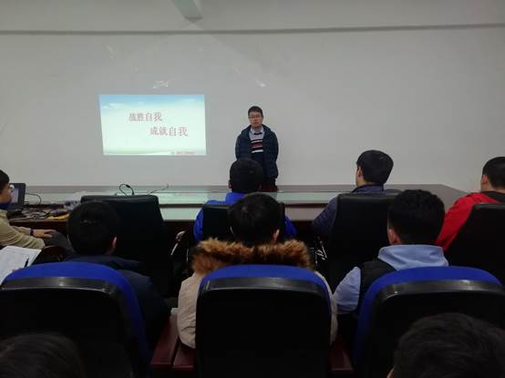 11月29日,王伟峰老师在SY5434为地籍1802班同学召开战胜自我、成就自我主题班会。