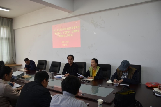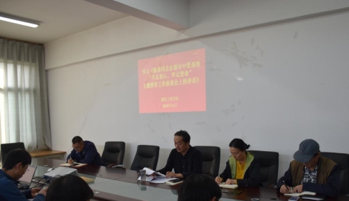 11月12日下午,根据学校党委宣传部《关于开展“不忘初心、牢记使命”主题教育学习的通知》的要求,测绘工程学院全体教职员工在院会议室SY5434进行了集体学习。