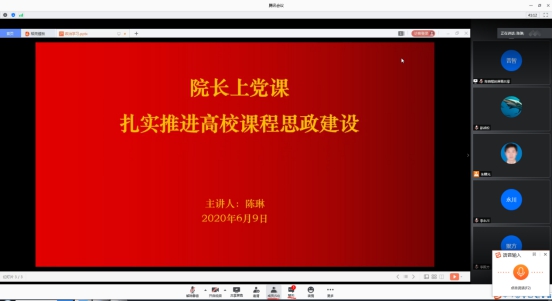 6月9日下午,测绘工程学院院长陈琳在线上为测绘工程学院全体教职工讲授了题为《扎实推进高校课程思政建设》的党课。