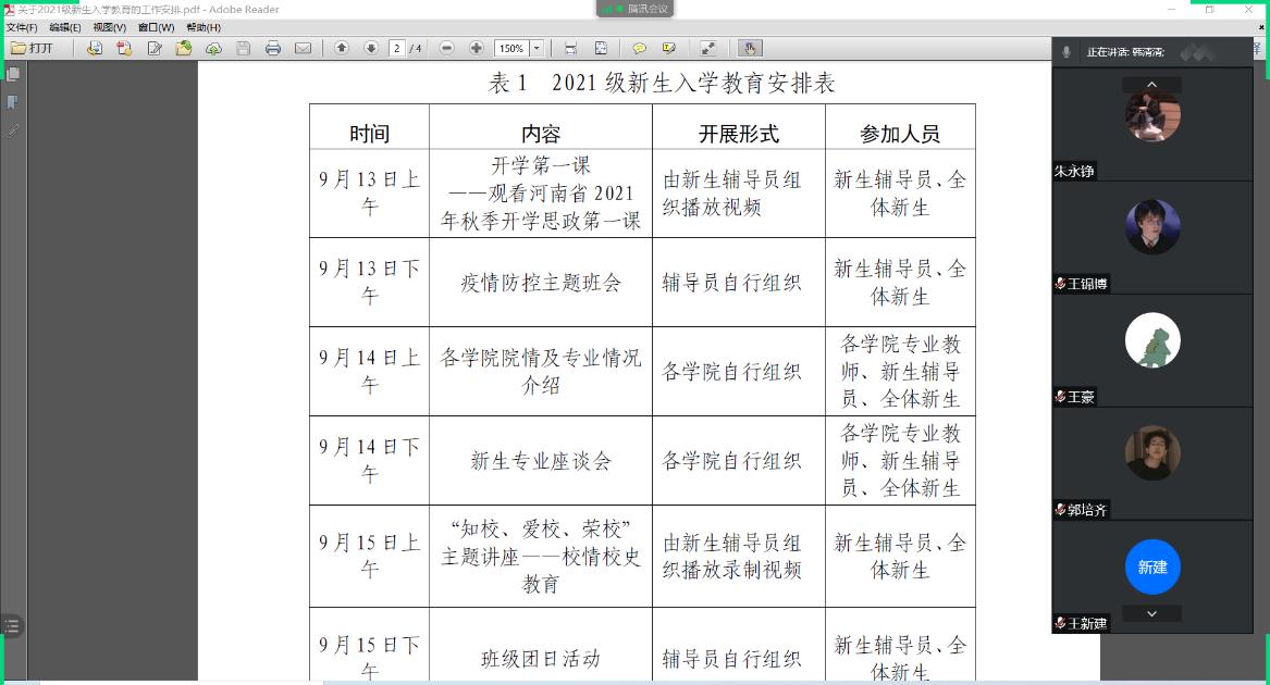 911日下午,为引导学生遵守疫情防控各项要求,明确新学期的各项要求,2021级辅导员韩清清召开“开学第一课”主题班会,此次班会参加的班级有工程测量(3+22101工程测量(3+22104班。