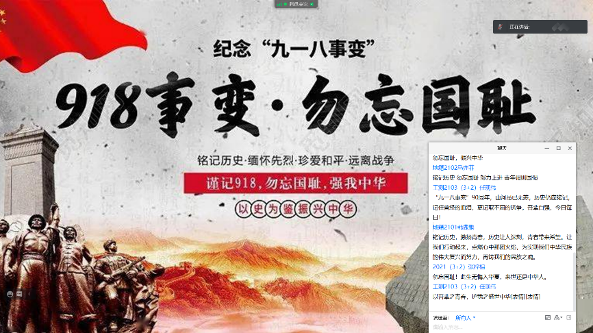 在9月18日这个特殊的日子,辅导员老师带领新生再谈血泪史,提醒同学们勿忘国耻,不要忘记落后就要挨打的历史教训,从而更加坚定中华民族伟大复兴的信念,同学们悲不自胜,纷纷在评论区留言,激发了浓浓的爱国之情。