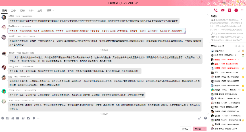 会后,同学们热情不减,积极在班级群内交流今天的学习心得。