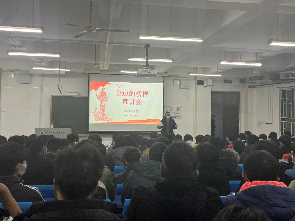 “身边的榜样”优秀大学生事迹宣讲会引起同学们的强烈反响、受益匪浅,认为心中要有目标,脚下有力量。测绘工程学院党总支副书记彭战松做宣讲总结,他表示,榜样就是一面迎风招展的旗帜,激励同学们见贤思齐,奋勇向前。学榜样,不仅要了解榜样的事迹、感受榜样的力量,更要在工作、生活中,时时、事事、处处以榜样为标杆,争做榜样。