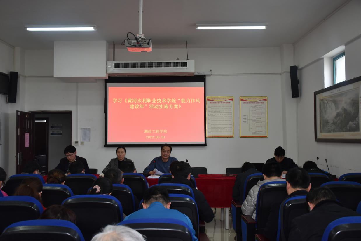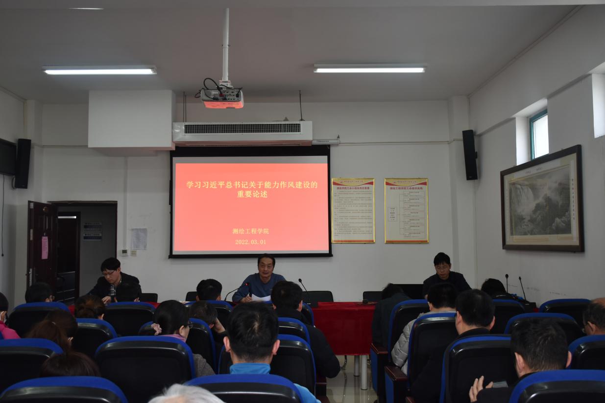 3月1日下午,在测绘工程学院全体教职工会议之际,党总支书记纪勇和教工支部书记朱曙光带领大家,相继学习了习近平总书记关于能力作风建设的重要论述和《yl8cc永利官网“能力作风建设年”活动实施方案》。