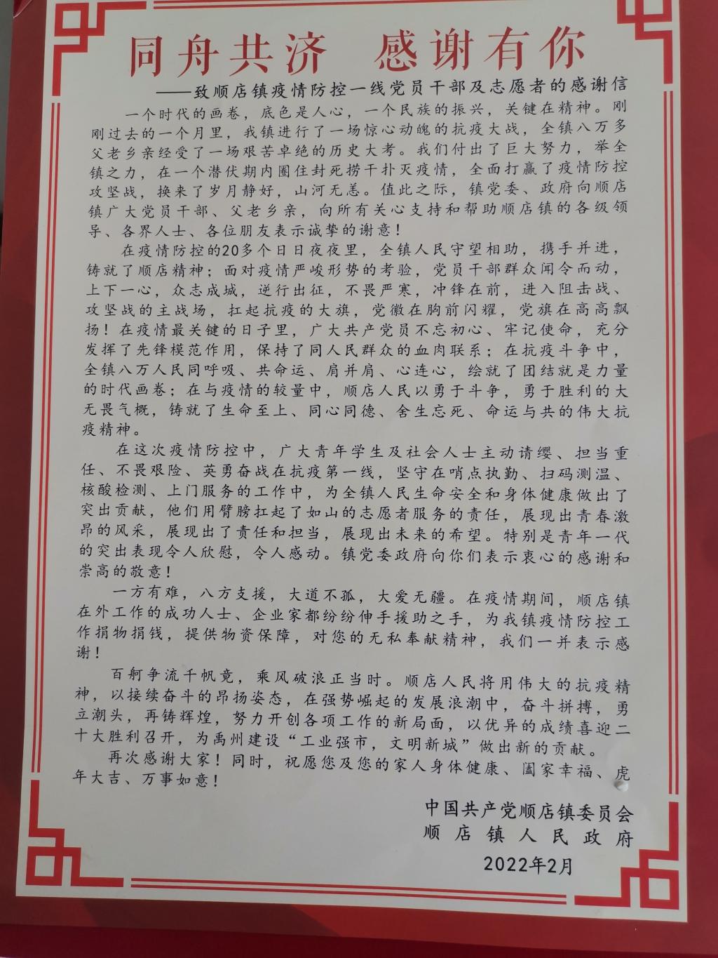 4 丁明浩收到顺店镇人民政府的感谢信