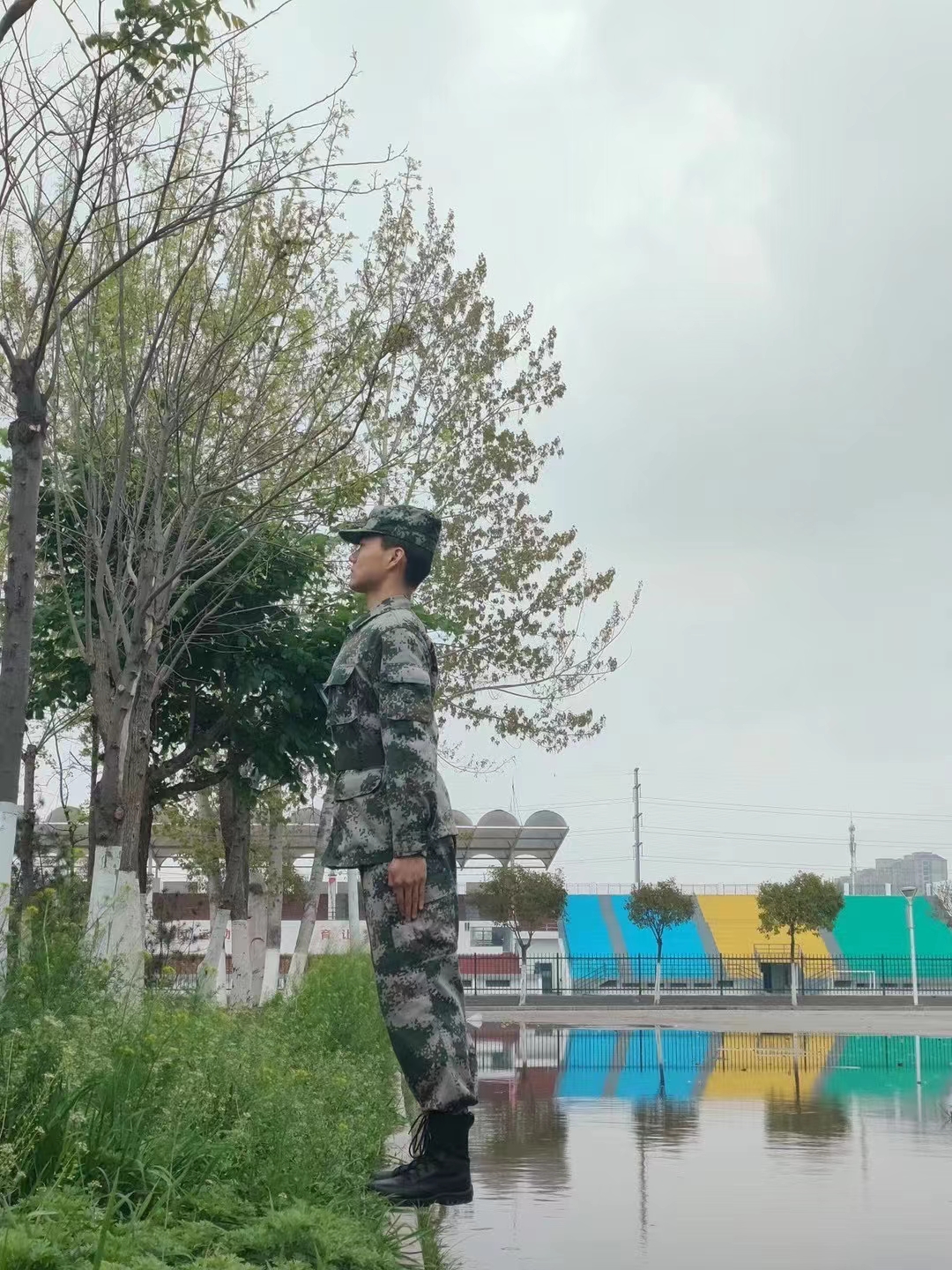 1 丁明浩参加学校国旗护卫队军姿训练