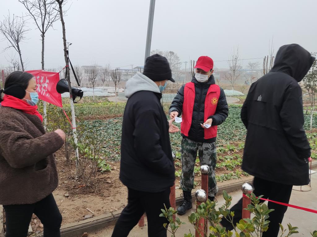 2 丁明浩作为疫情防控志愿者为村民发放核酸检测号码牌