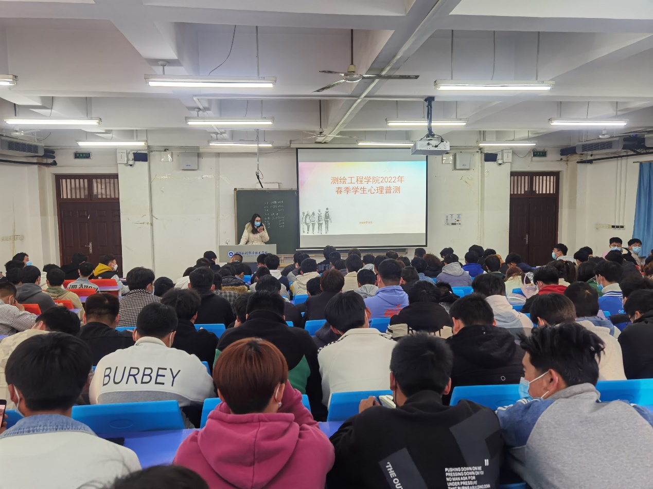 为了解和掌握大学生新学期的心理健康状况,加强大学生心理健康意识,318日下午,测绘工程学院辅导员韩清清在教学楼2302开展春季心理普测工作,参加此次心理普测的有测绘工程2001班、测绘技术2001-2003班、工程测量2106-2109班。