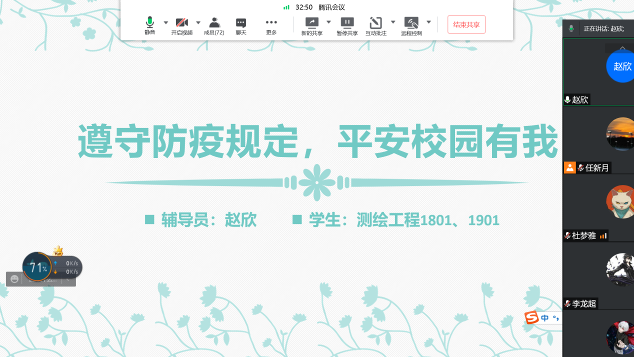 1 赵欣老师为测绘工程18011901召开疫情防控班会