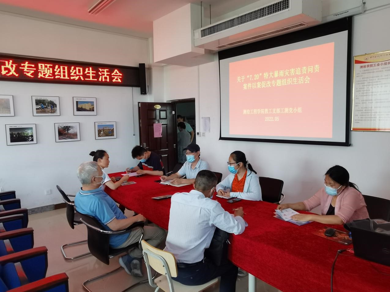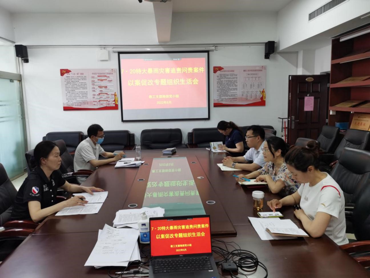 校党委关于郑州“7.20”特大暴雨灾害追责问责案件以案促改专题组织生活会的部署,5月24日下午,测绘工程学院教工支部召开了“7·20”以案促改专题组织生活会,会议由支部书记朱曙光主持。
