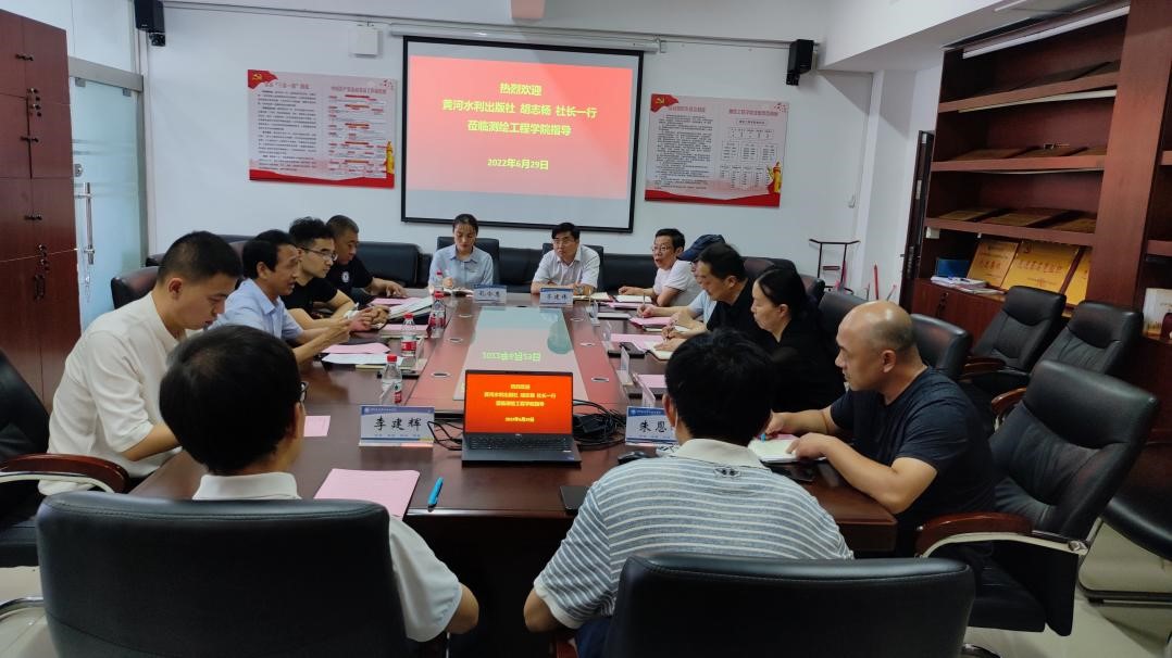 胡志杨社长对测绘学院的欢迎表示感谢并对我院近年来的快速发展表示祝贺和肯定,胡社长介绍了黄河水利出版社的历史沿革和发展状况,表示双方有合作基础有合作前景,希望与我院在专业和教材建设上进一步加强合作。