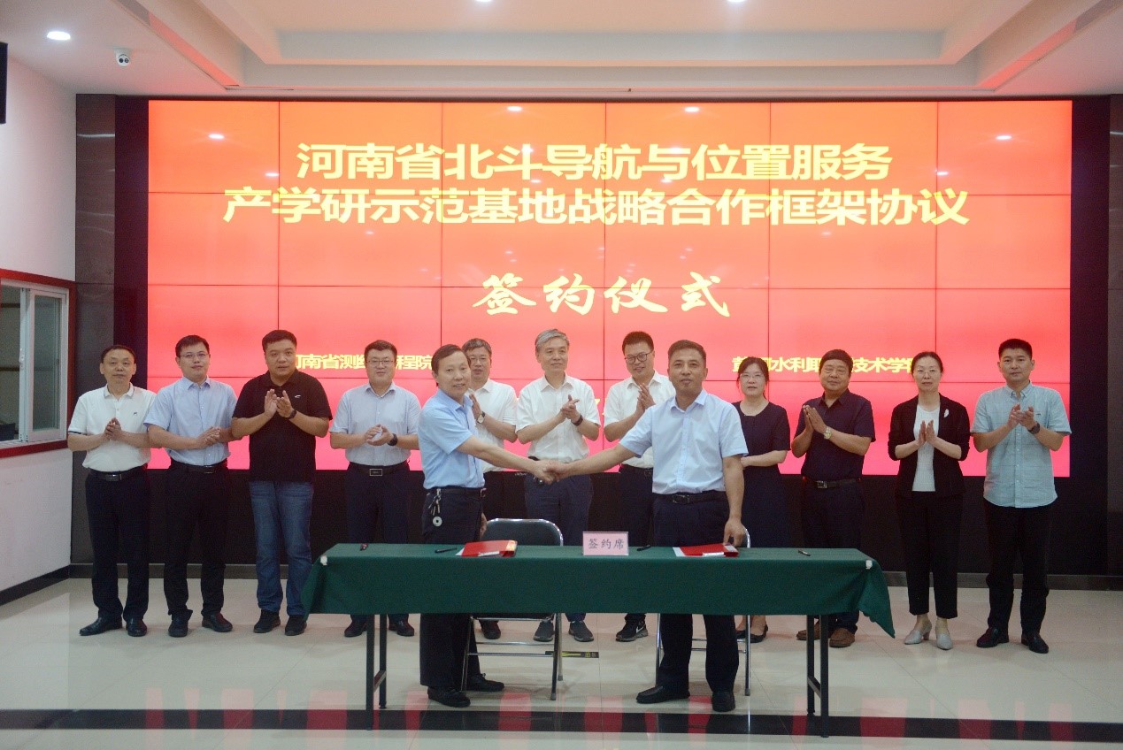 随后副校长菅浩然代表学校与企业签订了河南省北斗导航与位置服务产学研示范基地战略合作框架协议。