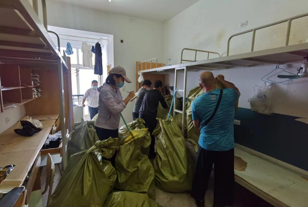 根据开封市疫情防控需要,永利官网部分学生宿舍楼(4号、5号、12-16号)被征用作为集中隔离点,学校全力配合属地做好房间腾挪工作。我院收到通知后,教师党员第一时间纷纷主动报名参加志愿服务,在学院领导班子的带领下,分组、分工、有序开展学生宿舍物品整理、封存等工作,让学校放心,让学生安心。
