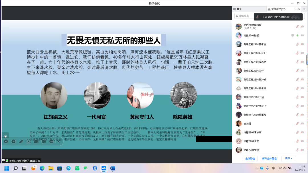 在党的二十大胜利召开之际,在深入了解双创精神的重要内涵后,为进一步激发永利官网学子创新创业精神和永利官网学子创业热情。促进双创精神的发扬,我院于11月6日下午由测绘工程学院创新创业部,在腾讯会议线上举行黄河之星双创故事会初赛选拔赛。