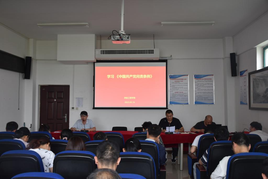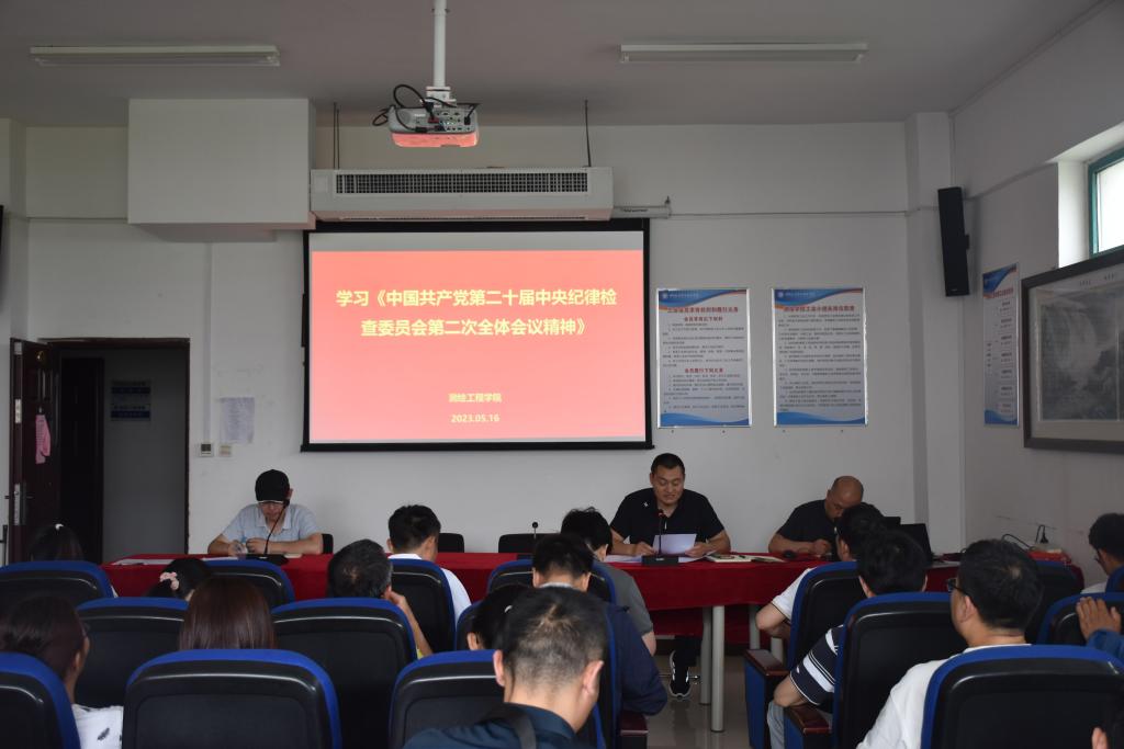 5月16日下午,测绘工程学院党总支组织全体教师开展政治理论学习,学习主要内容有《中国共产党第二十届中央纪律检查委员会第二次全体会议精神》与《中国共产党问责条例》。会议由学院党总支副书记彭战松主持。