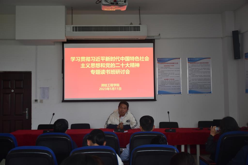 5月11日下午,测绘工程学院党总支在SY5434会议室召开学习贯彻习近平新时代中国特色社会主义思想和党的二十大精神专题读书班研讨会,全院教师党员参加会议。会议由学院党总支书记高琼主持。