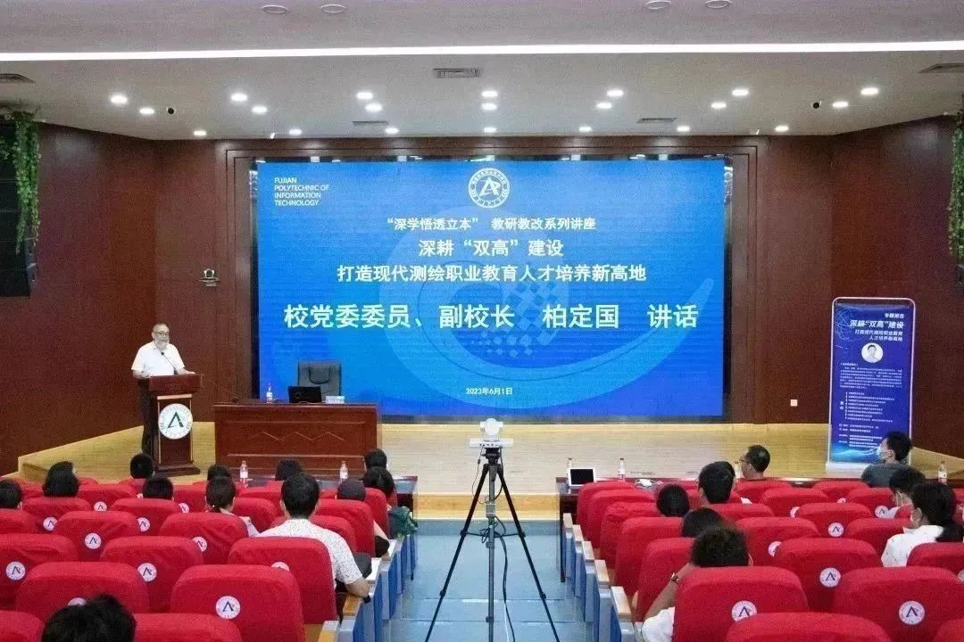 6月1日,永利官网全国高校黄大年式测绘地理信息教师团队负责人陈琳教授受邀到福建信息职业技术学院做《深耕“双高”建设,打造现代测绘职业教育人才培养新高地》专题讲座和专业指导。本次讲座由福建省测绘地理信息职业教育集团、福建省测绘地理信息学会主办,福建信息职业技术学院教务处、建筑工程学院、福建金创利信息科技发展股份有限公司协办。福建信息职业技术学院各教学单位院长、副院长、教研室主任及全体专兼职教师参加了讲座。