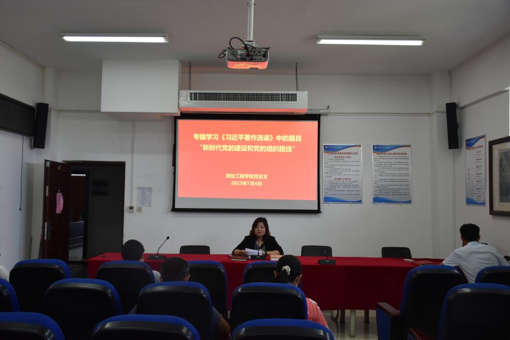 为深入学习贯彻《习近平著作选读》中的篇目“新时代党的建设和党的组织路线”,74日,测绘工程学院党总支组织全体教师党员在SY5434会议室召开专题理论学习会议,会议由党总支书记高琼主持。
