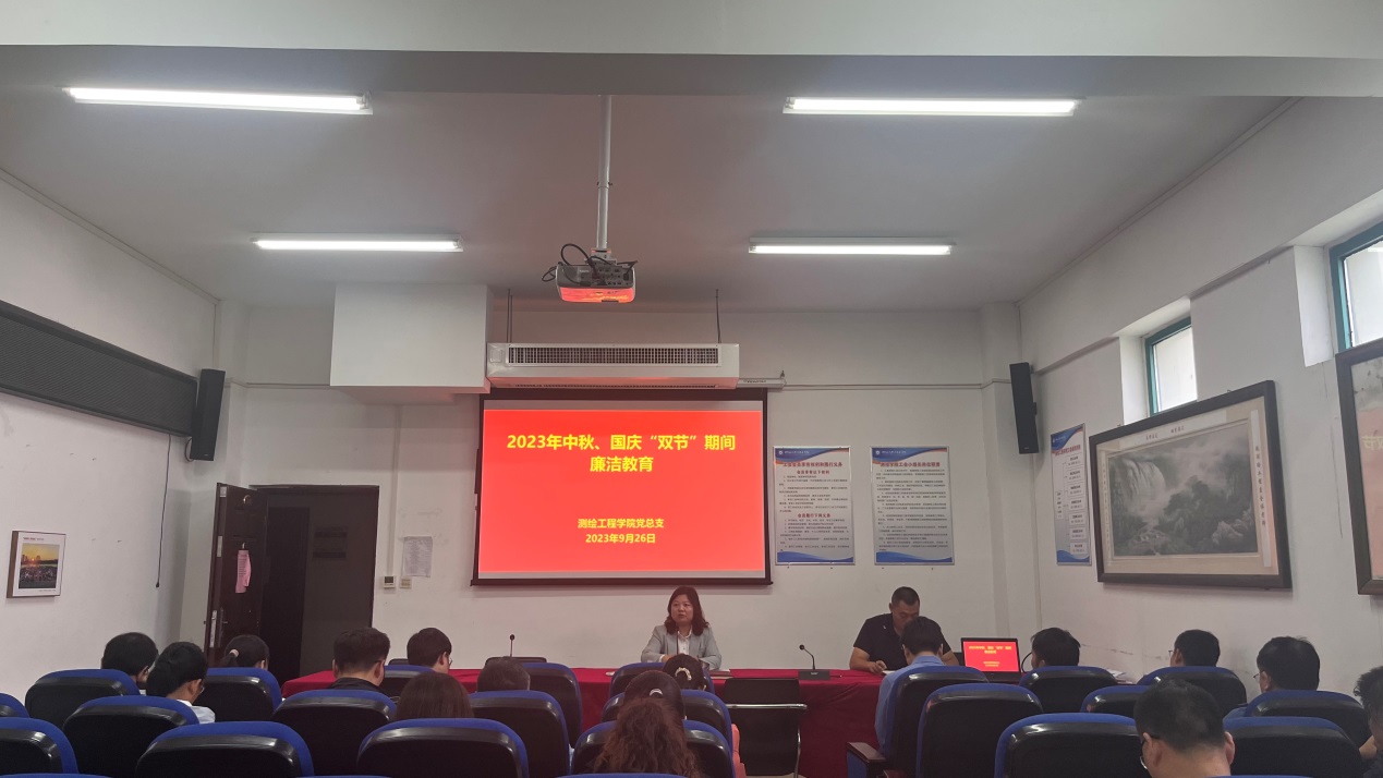 双节将至,为深入贯彻全面从严治党要求,共同营造崇廉尚俭、安全文明的节日氛围,测绘工程学院党总支于9月26日在学院SY5434会议室召开“双节”廉洁教育专题会议,会议由党总支书记高琼主持并领学。