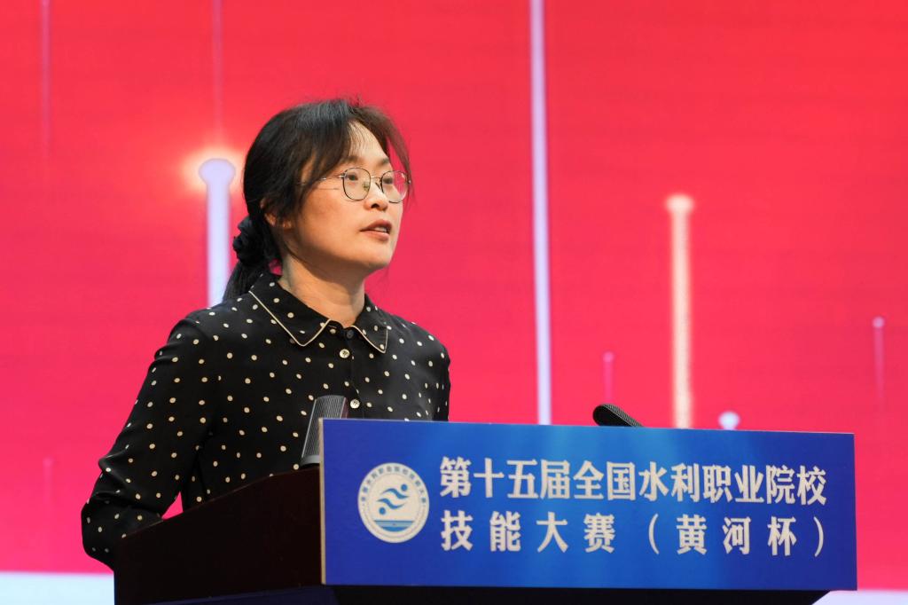 周保平致辞。她指出,新阶段水利事业高质量发展离不开坚实的人才保障,水利职业院校是贯彻落实习近平总书记关于职业教育重要指示和水利部要求,培养水利未来人才的主战场。本次大赛是对学生技能水平的检阅,也是对各水利院校人才培养质量的检验,是深化“产教结合”加强校企合作的一次具体实践,是拓宽人才培养渠道的有效形式。她希望同学们能够通过竞赛激发出热爱水利、服务水利的深厚情怀,并将该份情怀带入到日常的学习和工作中,不断磨砺、不断进步,用青春与智慧、激情与活力,谱写出水利事业美好的明天。