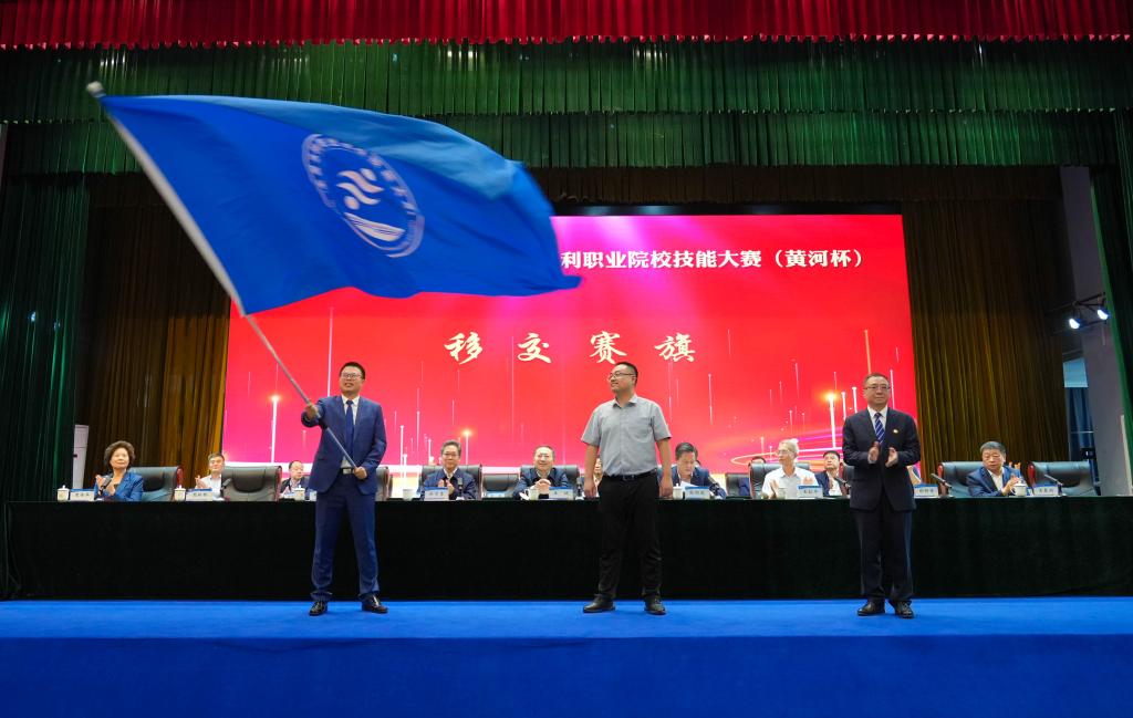 yl8cc永利官网党委副书记、校长胡昊将赛旗移交给湖南水利水电职业技术学院党委副书记、校长周柏林。周柏林代表下届大赛承办校致辞。